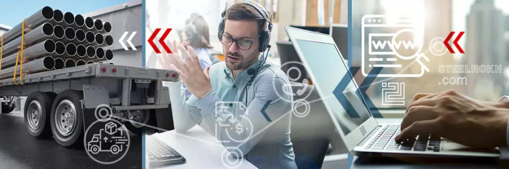 در استیل رخ ما کلیه ارتباطات و فرآیندهای کاری را متناسب با نیازهای مشتری و بازار و با هدف تسهیل و تسریع چرخه خرید تنظیم و بهینه‌سازی کرده‌ایم. از آنجا‌ که بخش عمده‌ای از مشتریان بازار استیل را شرکت‌ها و بنگاه‌های تولیدی تشکیل می‌دهند ، استیل رخ همواره تلاش دارد تا روند فروش را متناسب با پروسه‌های رایج در خرید و تأمین این بنگاه‌ها سازگار سازد. وب‌سایت استیل رخ بگونه‌ای طراحی شده که به شما امکان می‌دهد مراحل استعلام قیمت و ثبت سفارش را براحتی پیش ببرید. همچنین مشتریانی که روش سفارش تلفنی را ترجیح می دهند، می‌توانند با یک اشاره به تیم کارشناسان فروش استیل رخ متصل شوند و از ابتدا با اعلام صورت درخواستی مراحل ثبت سفارش و خرید را بصورت تلفنی پیگیری نمایند. بطور کلی مراحل خرید در این مجموعه شامل موارد زیر است.