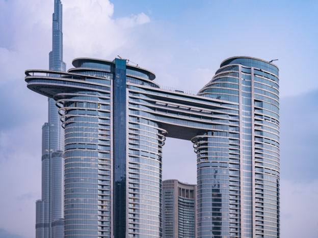 این برجهای ۲۳۰ متری دوقلویی که در دبی قرار دارند، توسط یک پل در ارتفاع زیاد به هم متصل شده و دارای یک سکوی اسکای واک است که منظره 360 درجهای از شهر را ارائه میدهد. این برجها به کمک ورق استیل پرداخت شده و برای اینکه کمترین میزان ردپای کربن در طراحی سازه های فولادی دیده شود از فولاد زنگ نزن با گرید 316L با ضخامت ۲ میلیمتر بهره برده شده است. نمای این ساختمان از استیل بازیافتی ساخته شده است و ردپای کربن آن سه برابر کمتر از میانگین فولاد ضد زنگ جهانی است. در این برجها از ۱۴۶۰ تن فولاد استفاده شده که 100 درصد قابل بازیافت هستند. این ساختمان 54 طبقه در سال ۲۰۱۹ تکمیل شده است.