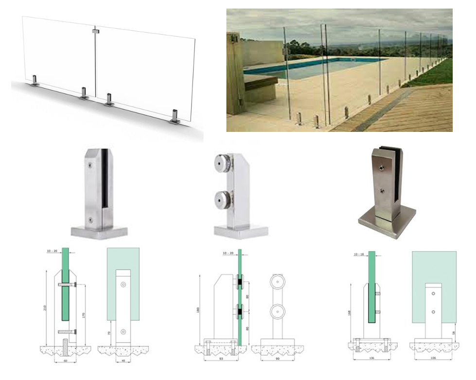 اسپیگوت انواع پایه اسپیگوت برای نگهداری حفاظ شیشه‌ای