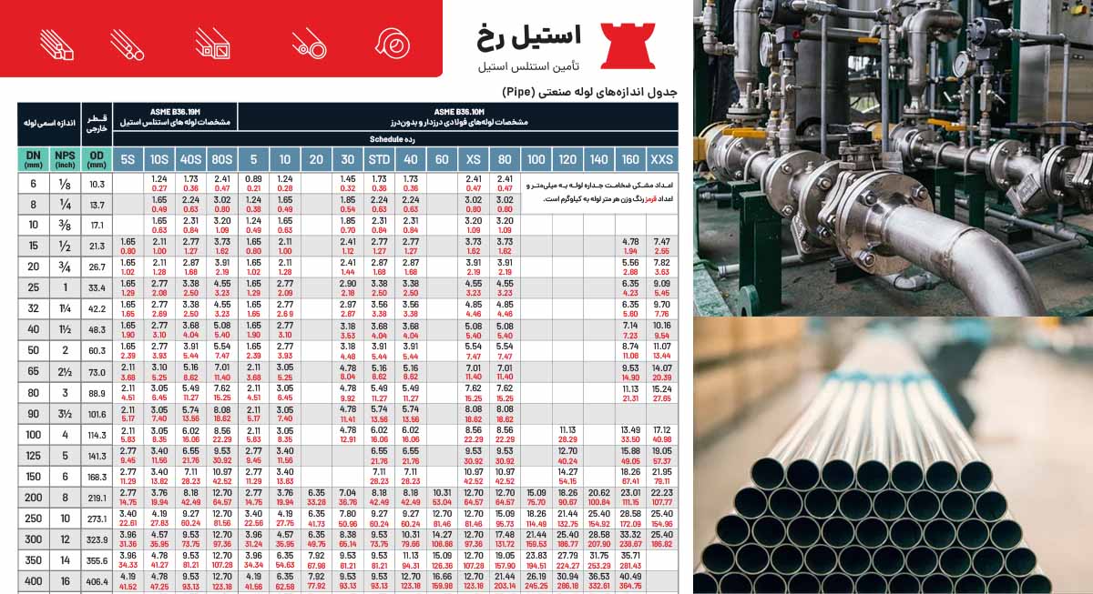 جداول اندازهگذاری لوله استیل