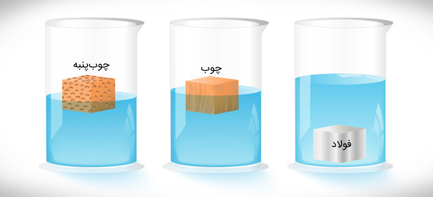 مقایسه چگالی فولاد، چوب، چوبپنبه و آب