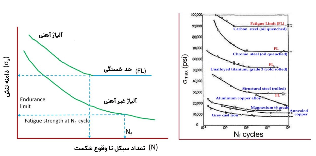 نمودار مکانیزم خستگی فلزات آهنی و غیرآهنی