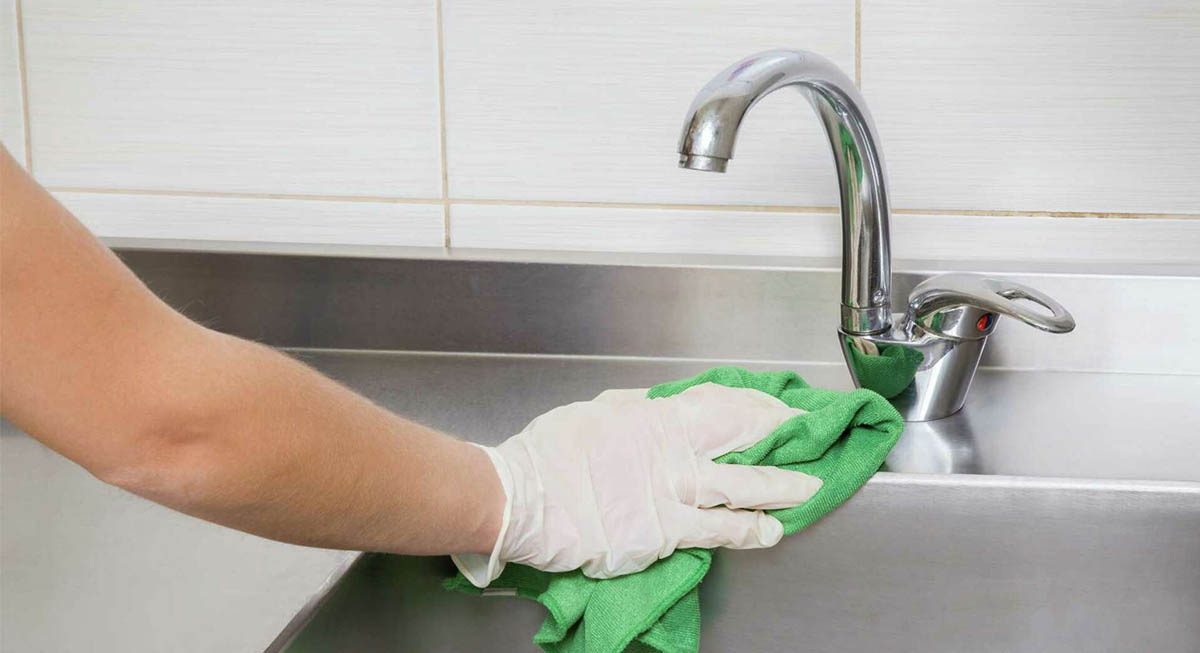 - تمیز کردن نهایی: پس از انجام مراحل بالا، سطح سینک را با سرکه رقیق شده و با استفاده از پارچه تمیز دستمال بکشید. اگر همچنان به صورت جزئی خط و خش روی سینک باقی مانده است میتوانید روشهای از بین بردن خط و خش سطحی را که پیشتر به آن اشاره کردیم، امتحان کنید.