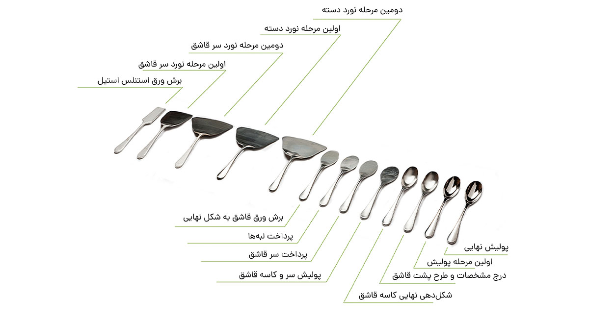 استنلس استیل به دلیل مقاومت بالا در برابر خوردگی، دوام طولانی و زیبایی ظاهری، پرکاربردترین متریال مورد استفاده در ساخت لوازم و ظروف آشپزخانه بهشمار میآید. کارد، چنگال و قاشق استیل نیز به دلیل دوام بالا و کیفیتی که دارند، در تمام خانهها استفاده میشود. این قاشقها معمولاً از جنس فولاد ضد زنگ با ترکیبات شیمیایی حاوی کروم و نیکل تولید میشوند که موجب بهبود خصوصیات مکانیکی و شیمیایی آنها میگردد. فرآیند تولید قاشق استیل مرغوب یک فرآیند پیچیده صنعتی است که نیازمند استفاده از تجهیزات پیشرفته و تکنولوژیهای نوین است. در ادامه مراحل تولید به تفصیل توضیح داده میشود.