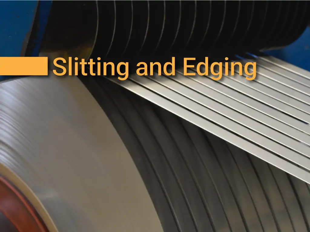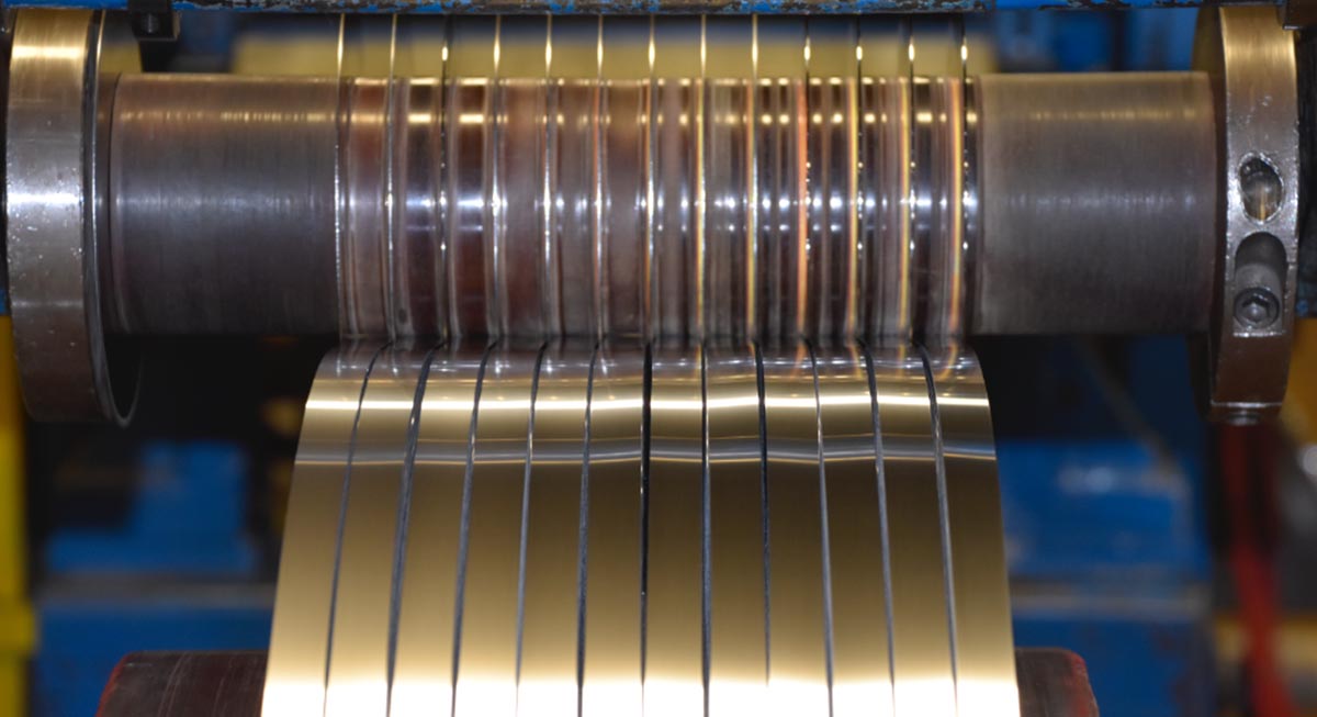 - برش اولیه: پس از تنظیم تیغهها برای نواربری استیل، کویل وارد ناحیه برش میشود و تیغهها با دقت 0.005 اینچ (0.127 میلیمتر) ، عرض نوارها را برش میدهند.