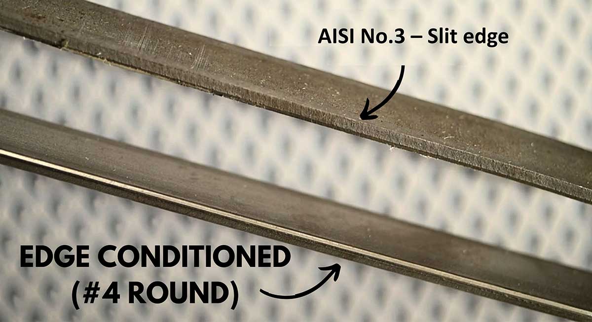 - لبه برشی AISI No. 1 – Slit Edge: لبه برشی، حداقل عرضی برابر 0.508 میلیمتر (0.020 اینچ) و ضخامت 1.574 تا 3.175 میلیمتر (0.062 تا 0.125 اینچ) دارد.