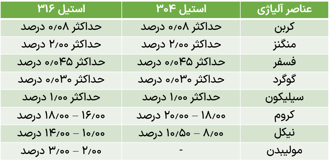 تفاوت استیل 304 و 316
