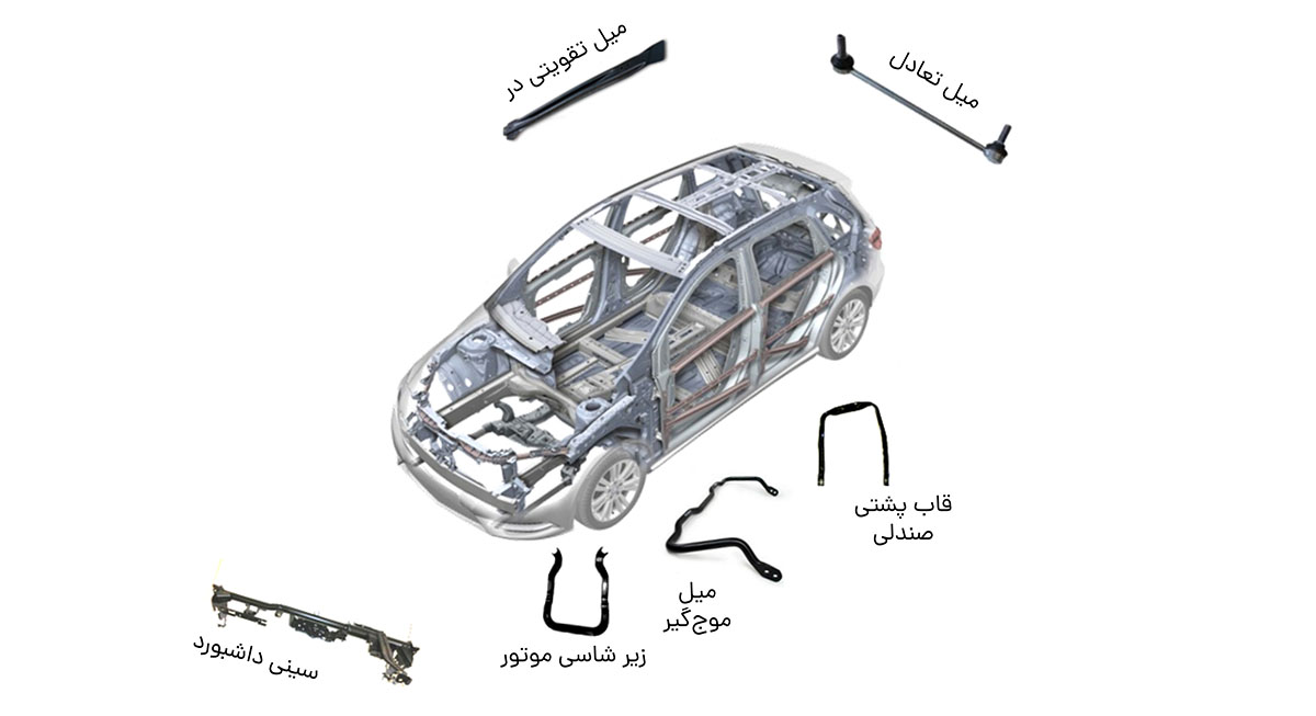 - صنعت خودرو: در تولید شاسی، تعلیق، ستونها و قطعات تقویتی بدنه خودرو و استفاده در سیستمهای اگزوز و منیفولد میتوان از این روش استفاده کرد. همانطور که میدانید استنلس استیل نقش گستردهای در تولید قطعات و لوازم خودرو ندارد، اما فرآیند هیدروفرمینگ فولاد برای تولید قطعات مورد استفاده در خودرو و بدنه آن بسیار کاربردی است.