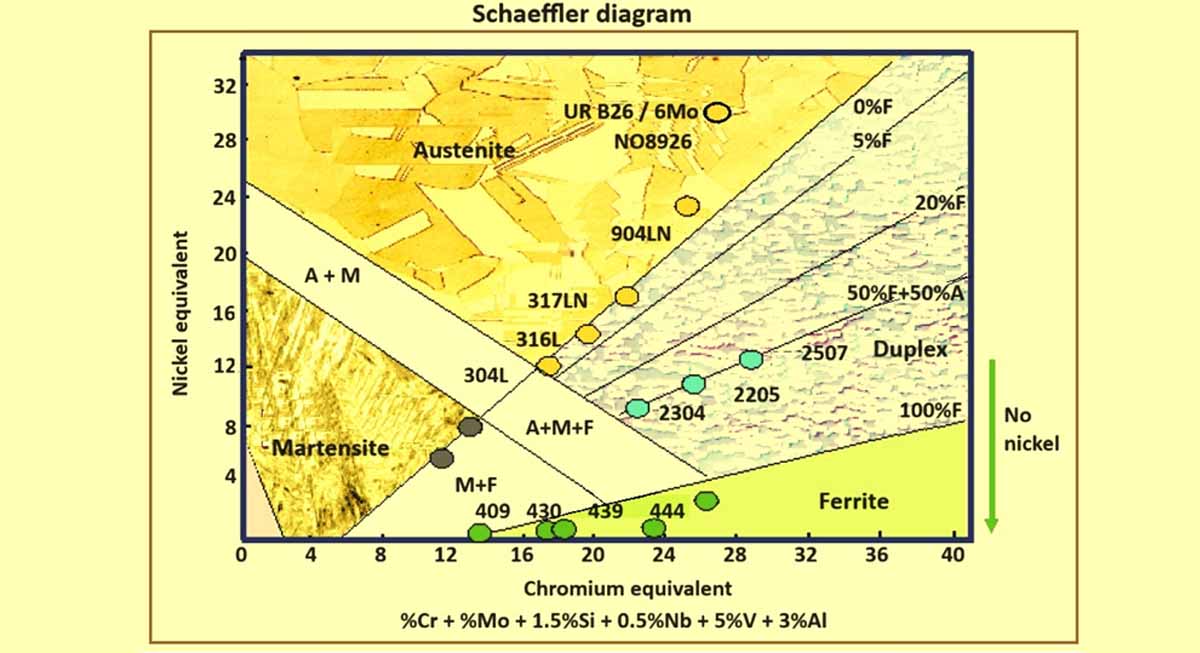 دیاگرام شفلر ابزاری کلیدی برای پیشبینی ریزساختار فلز جوش است. این دیاگرام یک ابزار گرافیکی است که بر اساس مقادیر معادل کروم (Cr_eq) در محور افقی و نیکل (Ni_eq) در محور عمودی، نوع ریزساختار فلز جوش را پیشبینی میکند. دیاگرام شفلر توسط هانس شفلر در دهه ۱۹۴۰ معرفی شد و هنوز هم به عنوان مرجع اصلی انتخاب فیلر در جوشکاری فولادهای زنگنزن به کار میرود.