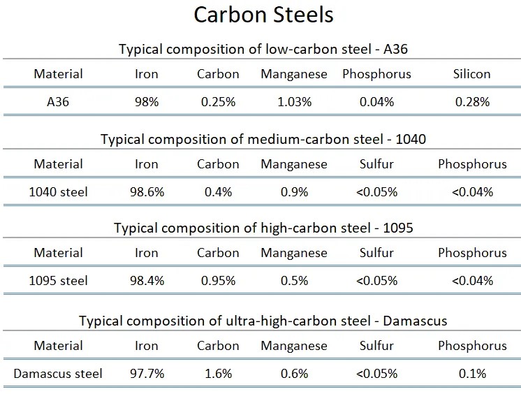 فولادهای پر کربن با 0.3 تا 1.2% کربن، سختی زیادی دارند و قادر به مقاومت در برابر سایش و حفظ شکل خود هستند. اما این دسته از فولادها تردتر (شکنندگی بیشتر) خواهند بود. در حالی که فولادهای کم کربن با 0.05 تا 0.3% کربن، انعطاف پذیر بیشتری دارند. به طور کلی، هر دو گروه فولاد کاربردهای گسترده‌ای در مهندسی دارند.