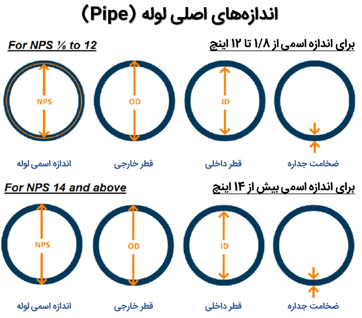 همانطور که پیشتر به تفاوت تیوب و لوله و نحوه دسته بندی آن، اشاره شد، قطر خارجی لوله (OD) با اندازه اسمی یا NPS متناظر است اما قطر داخلی لوله (ID) بر طبق عدد رده لوله (اسکجول یا ضخامت دیواره داخلی) آن تغییر میکند.