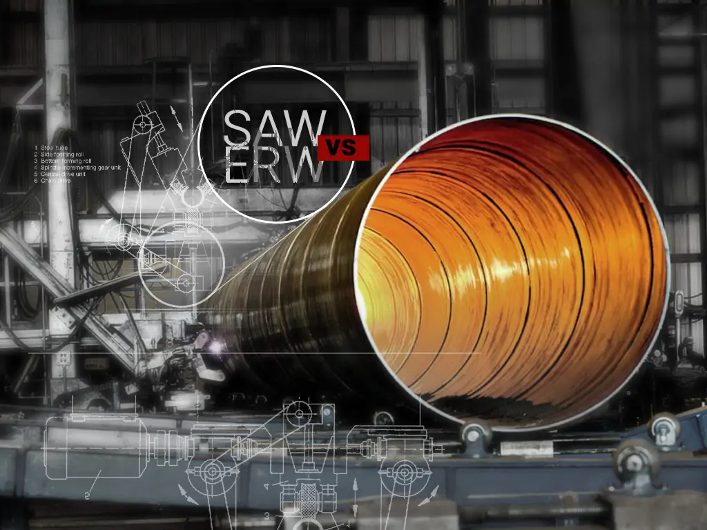 اولین تفاوت لوله ERW و لوله SAW ماده اولیه تولید آنهاست. برای تولید لوله ERW از رول استیل نورد گرم شده استفاده میشود اما برای تولید لوله SAW از ورق استیل نورد گرم شده استفاده میشود. به همین دلیل لوله ERW را میتوان در خط تولید پیوسته تولید کرد. این امر سبب بالا رفتن بازده و کم شدن هزینه تولید میشود. در حالی که saw steel که از ورق استیل یا ورق فولادی و همچنین نوار یا تسمه بصورت اسپیرال تولید میشود، و معمولاً قابلیت تولید پیوسته را ندارد.