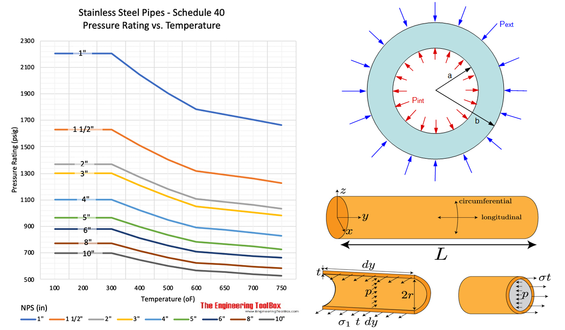 فشار قابل تحمل لوله به حداکثر میزان فشار داخلی لولههای استیل اشاره دارد؛ ولی این تعریف کافی نیست! در شرایط ایدهآل و استاندارد و همچنین در شرایط عملیاتی و کاری موضوع متفاوت است. در صنعت سه تعریف از میزان تحمل فشار لوله مطرح است و به این ترتیب، فشار طراحی، فشار اسمی و فشار کاری لوله تعریف میشود. فشار اسمی لولهها در شرایطی که در استانداردها ذکر شده است تعریف میشود. این مقادیر همانطور که از نامشان مشخص است مقدار تعریفی استاندارد و بدون در نظر گرفتن ضرایب تصحیح برای انطباق با شرایط واقعی است. مقادیر اسمی بنا به شرایط کاری، تلرانسهای تولیدی و فاکتورهای عملیاتی نیاز به تصحیح دارند.